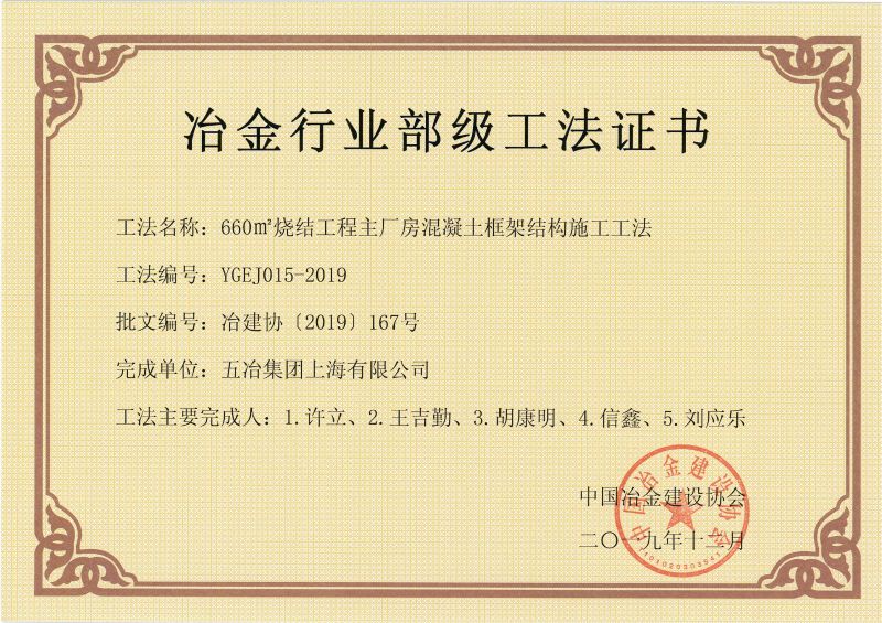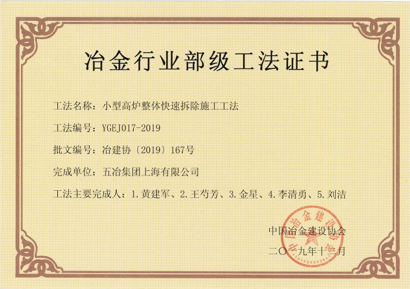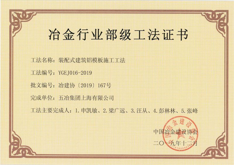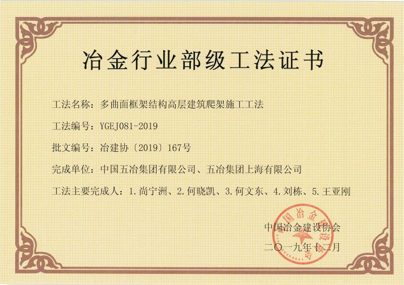 2019年部級(jí)工法