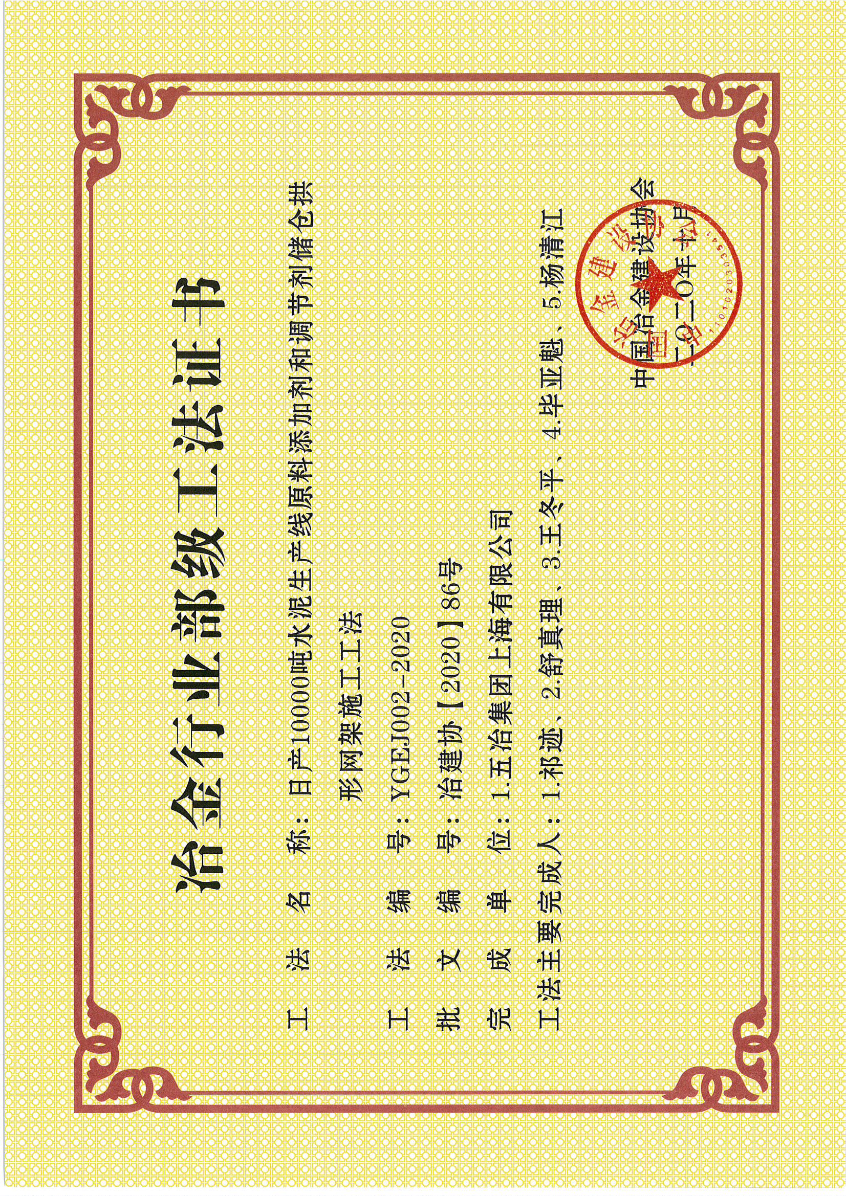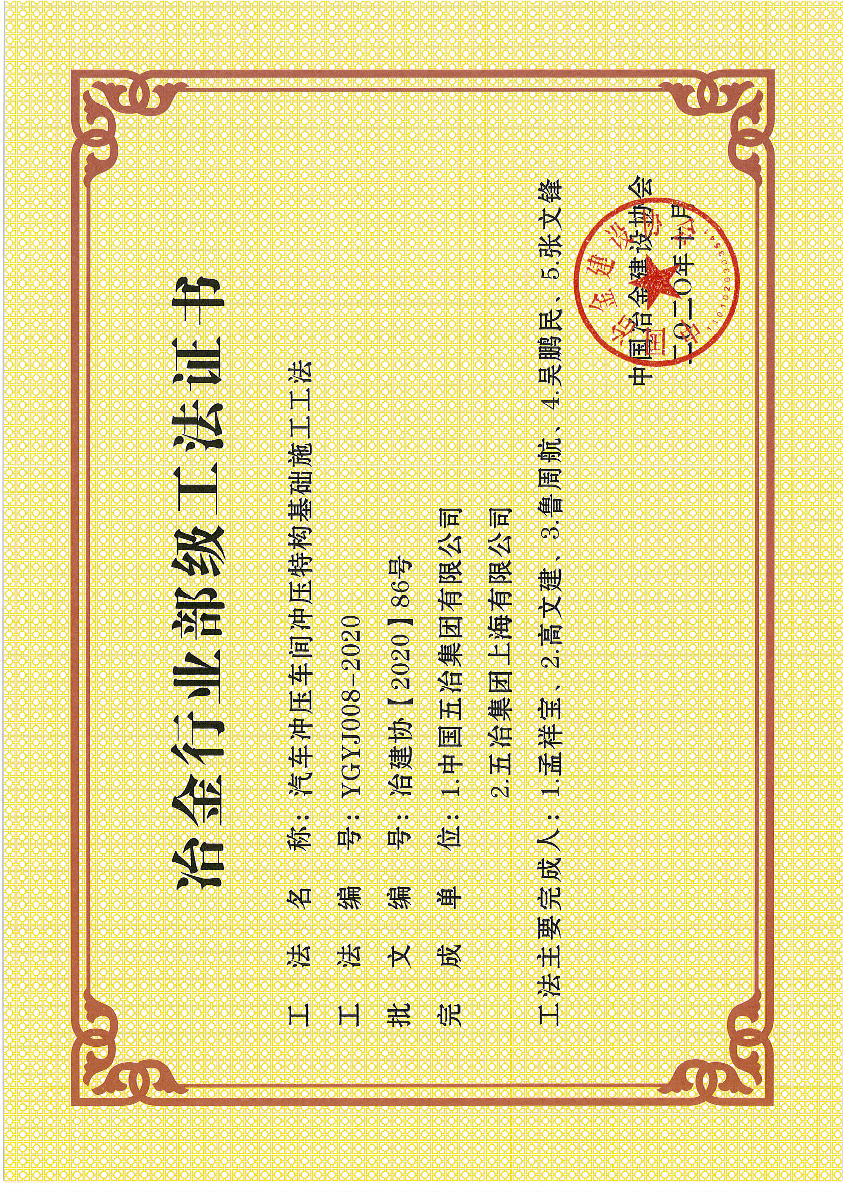 2020年部級(jí)工法