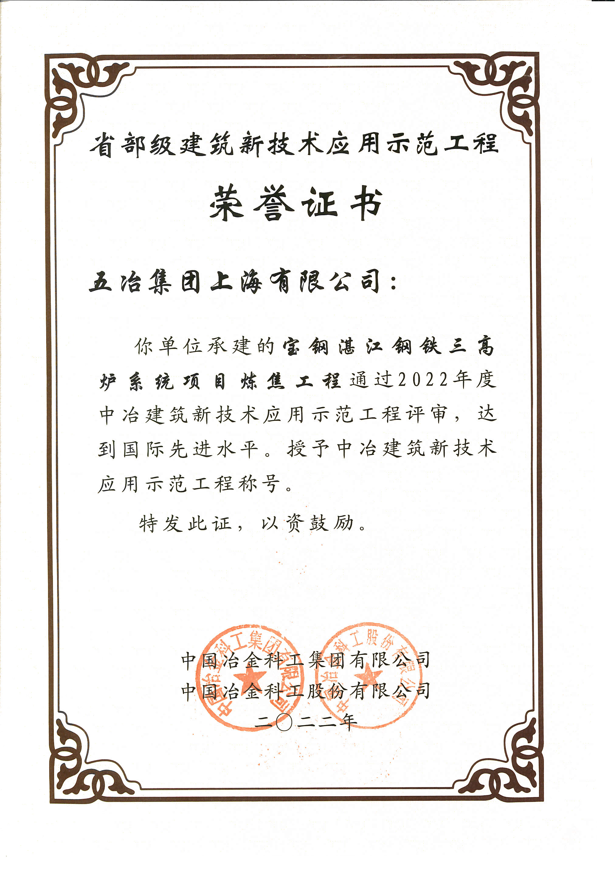 2022年寶鋼湛江鋼鐵三高爐系統(tǒng)項目煉焦工程-國際先進