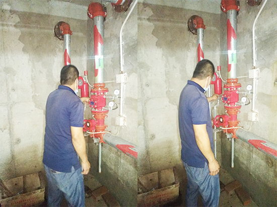 三、檢查消防供水設施:消防水池外觀,消防水箱外觀,消防水泵及控制柜工作狀態(tài),穩(wěn)壓泵、增壓泵、氣壓水罐工作狀態(tài),水泵結合器外觀、標識,管網(wǎng)控制閥門啟閉狀態(tài),泵房工作環(huán)境。